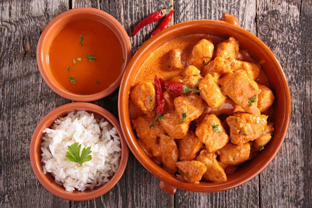 Juicy tandoori chicken pieces cooked in a creamy tomato-based masala sauce. Served with Rice